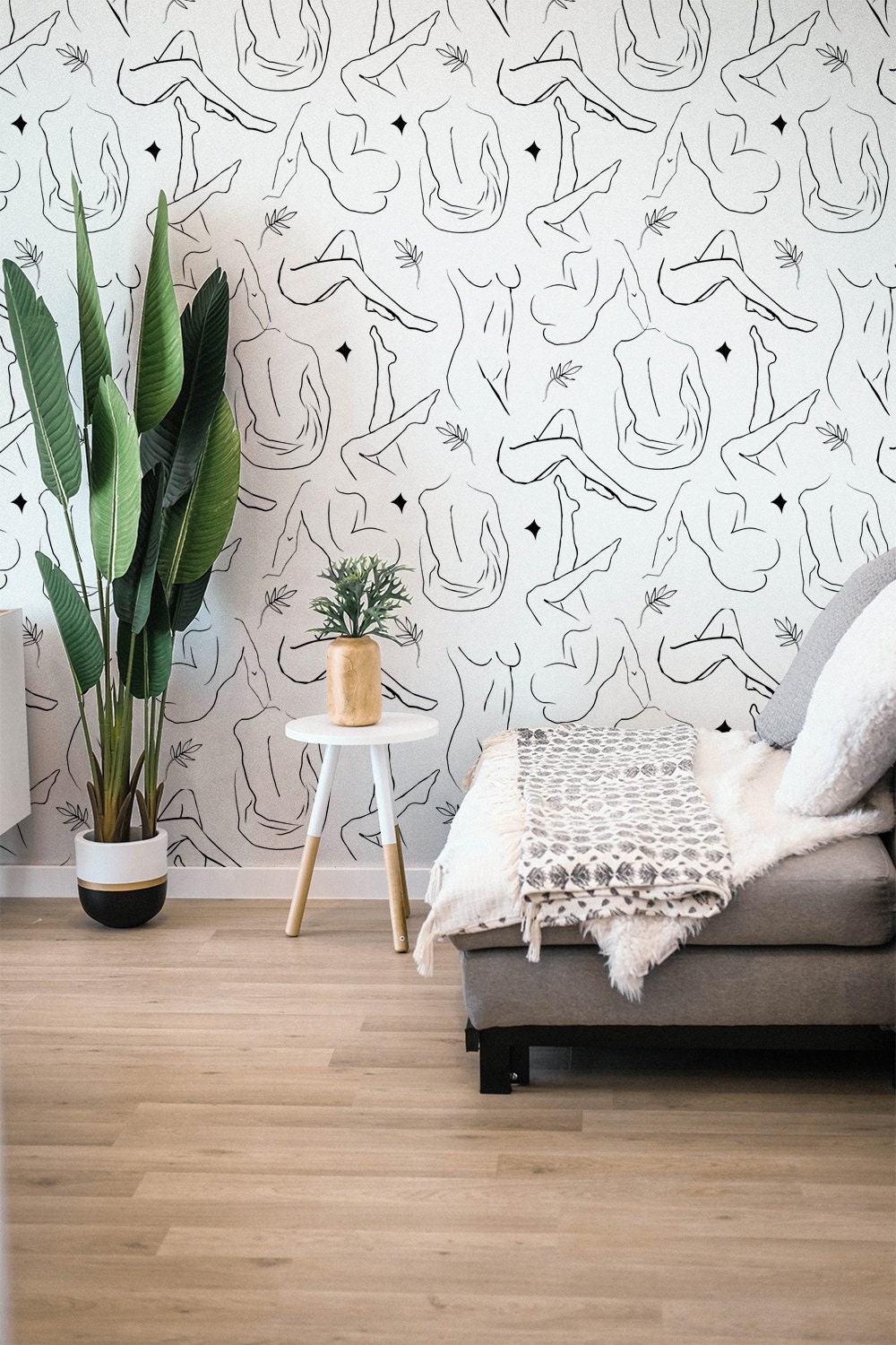 Female body line art wallpaper minimalist wall decor Line art Women body Wall mural ad vertisement by scandihomesART Ad vertisement from shop scandihomesART.